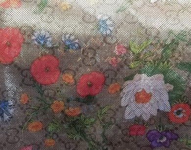 Gucci Holographic Brown Flower with a touch of blue/purple Fabric Spandex